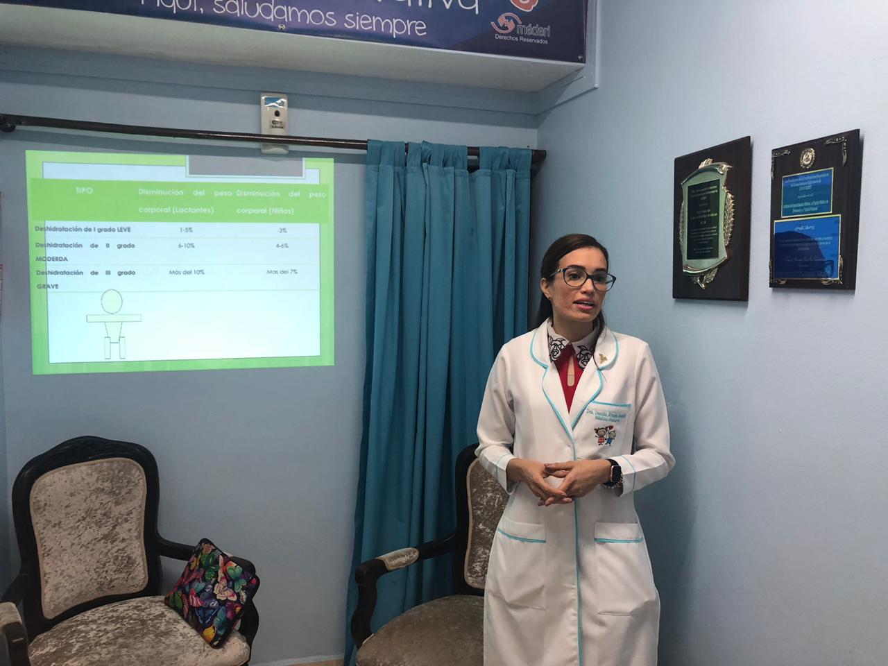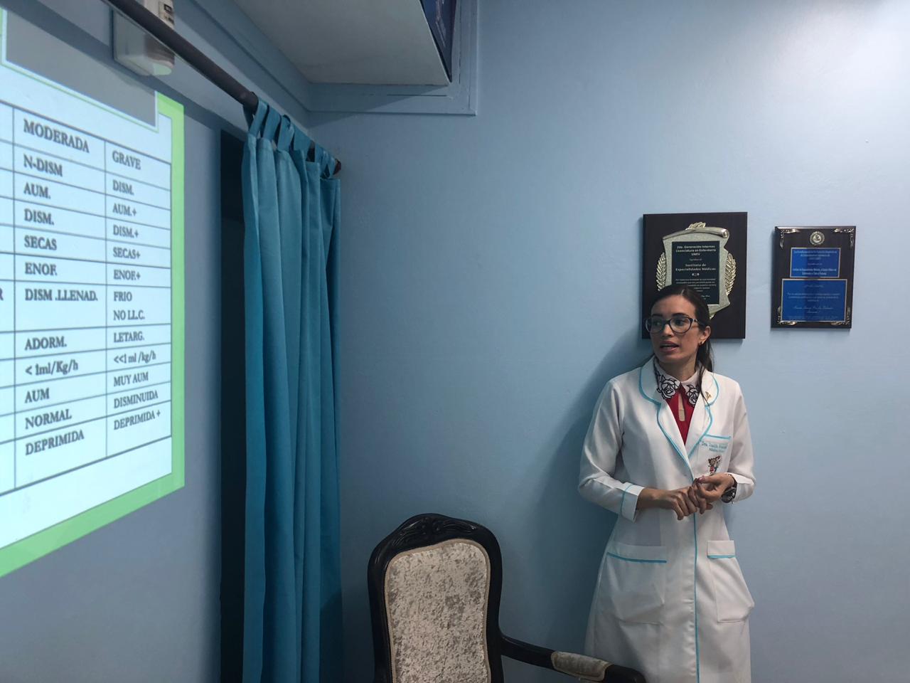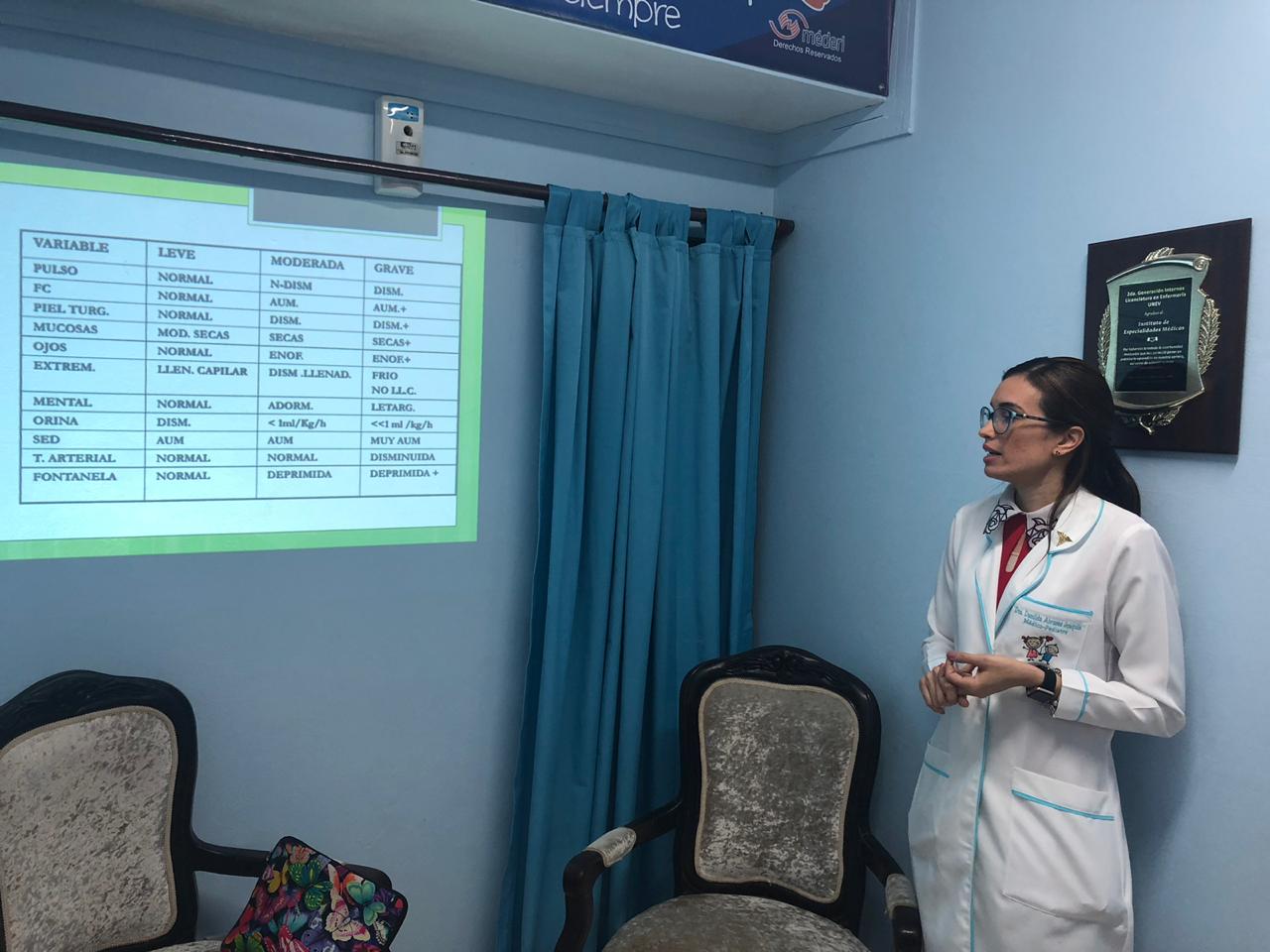 El Instituto de Especialidades Médicas en conjunto con la Dra. Danilda Álvarez, pediatra de nuestro centro realiza charla educativa dirigida al personal de enfermería acerca de la deshidratación pediátrica con la finalidad de orientar, educar y mejorar la atención que reciben nuestros usuarios.