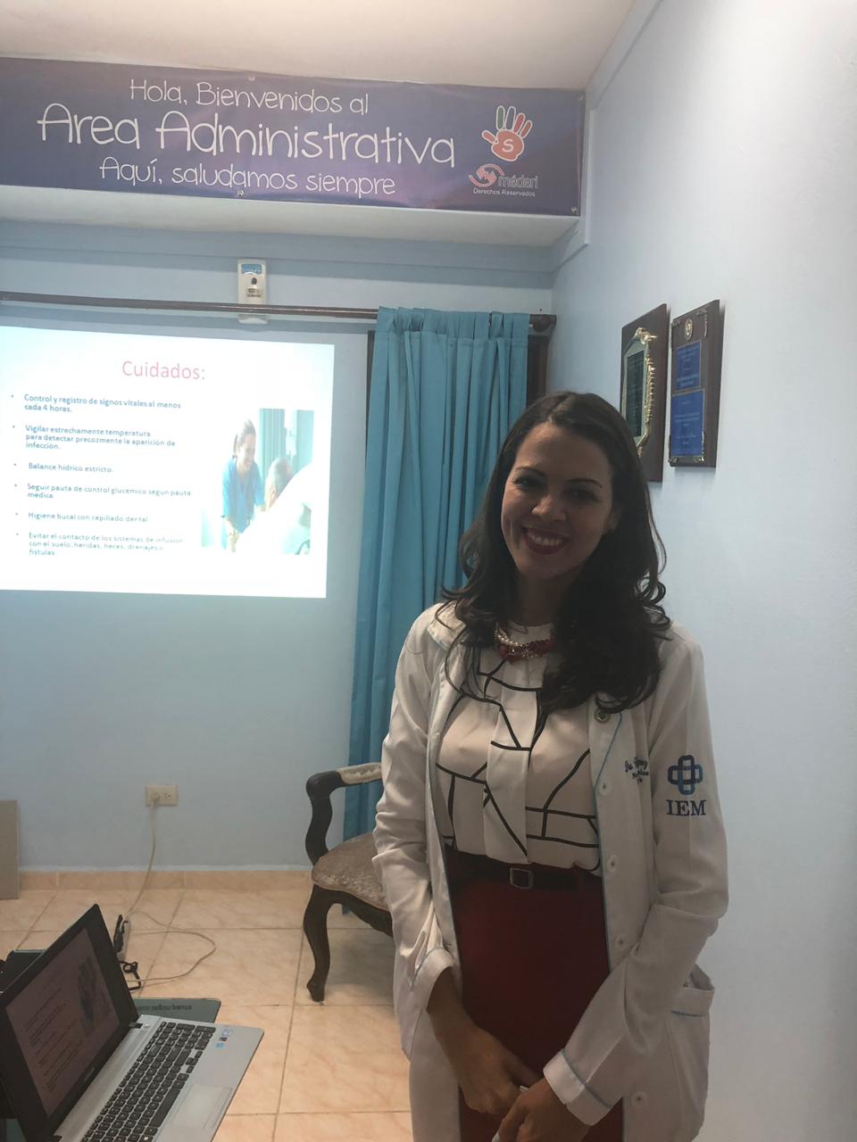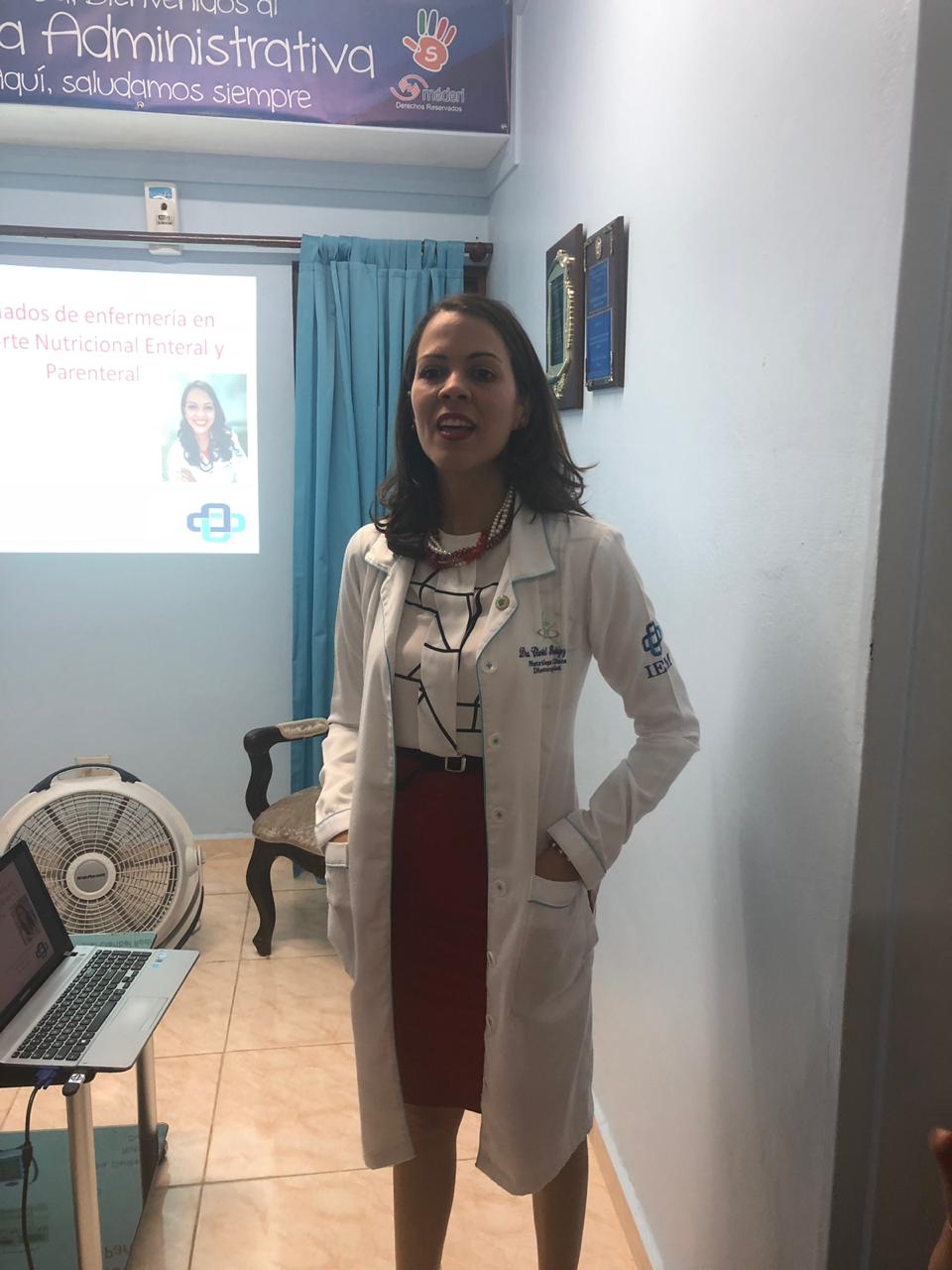 El Instituto de Especialidades Médicas en conjunto con la Dra. Claribel Rodríguez, nutrióloga clínica y dieto terapista de nuestra institución, realiza curso-taller acerca de los cuidados de enfermería en soporte nutricional enteral y parenteral con la finalidad de que todos nuestros usuarios reciban una atención integral al utilizar nuestros servicios.