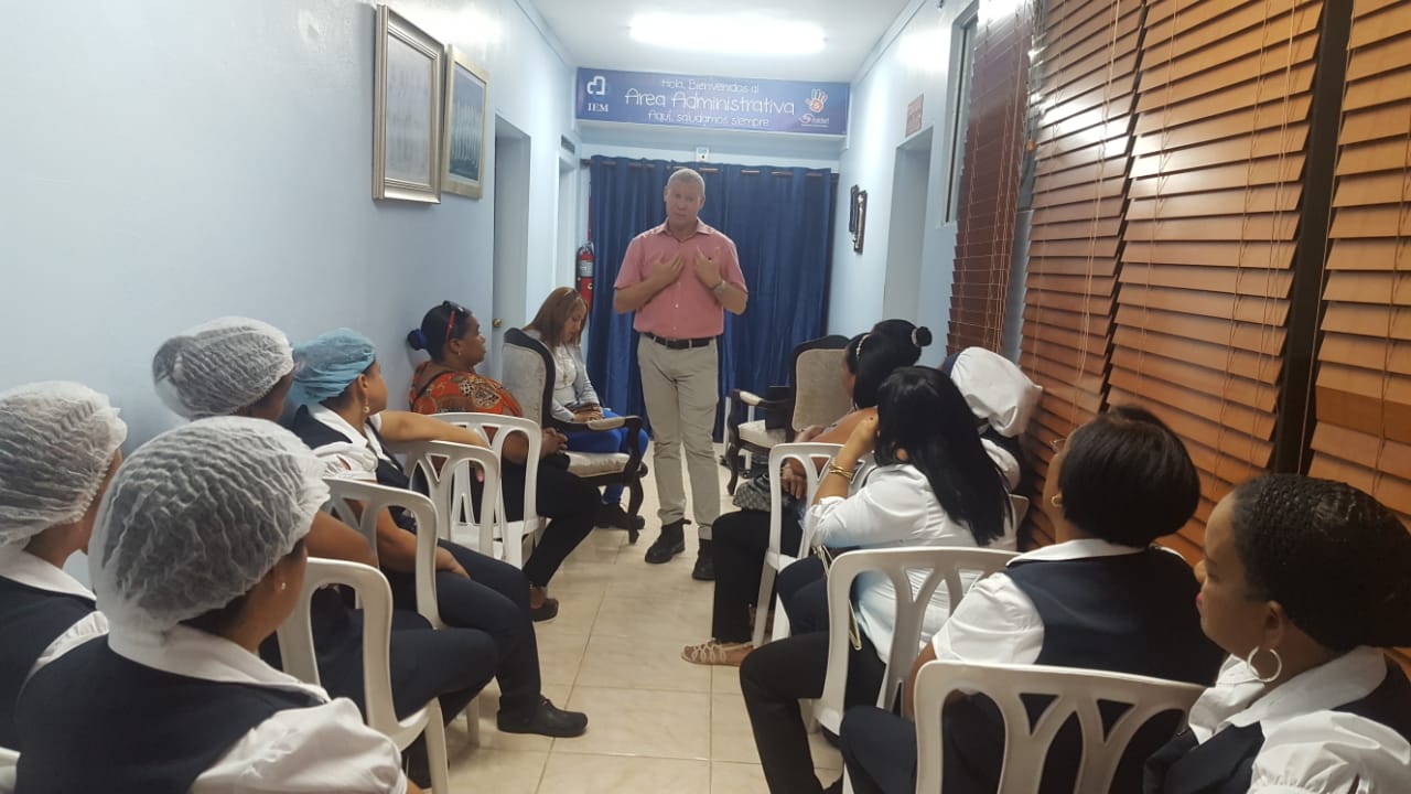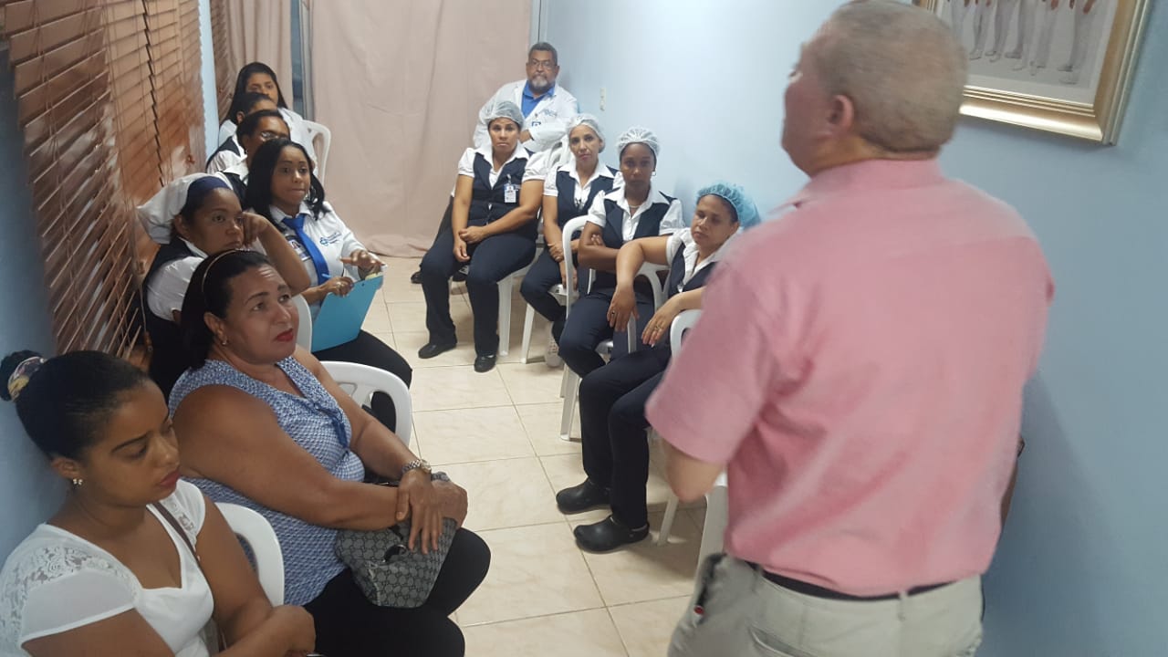Conferencia sobre actualización de Limpieza e higiene de Baños en Instituciones de Salud impartido por el Ing. Rubén Ramírez, la Lic. Rosile Díaz de laboratorios Proquía y la Lic. Luisa Guzmán encargada de bio-seguridad.